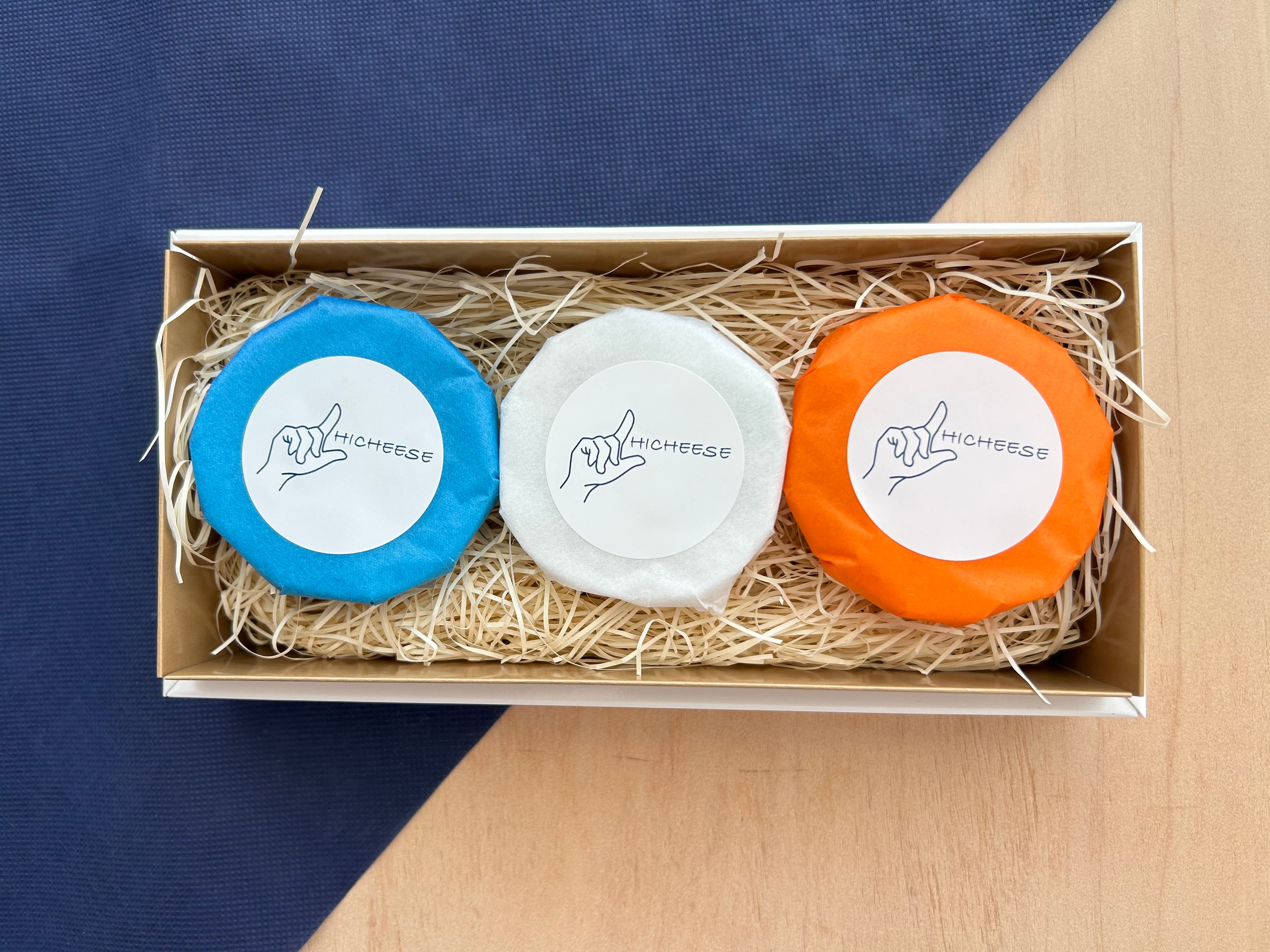 ・内容量:3個入り(白色 プレーン、青色 ゴルゴンゾーラチーズケーキ、オレンジ色 カマンベールチーズケーキ)